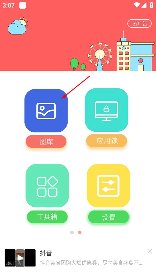 1、打开锁屏大全,点击首页的图库,进入图库页面。
