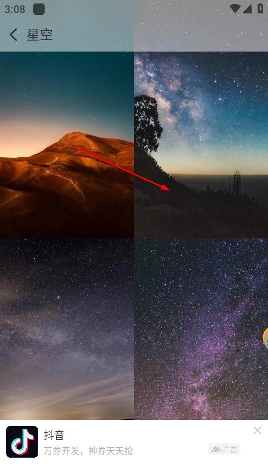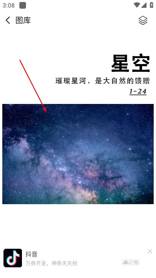 在图库页面中,点击与星空相关的内容,即可进入星空图片的展示页面。