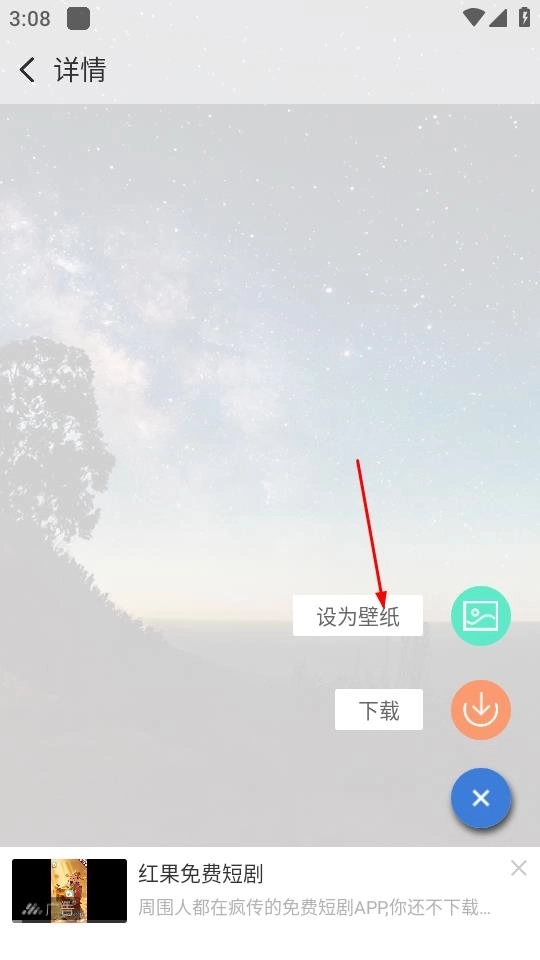 4、进入图片详情页后,点击“设为壁纸”选项,即可将此图片设置为壁纸。