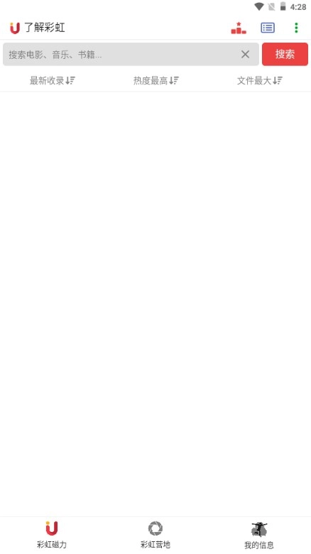 1、首先在本站安装彩虹磁力,进入该应用的首页后,界面如下所示。