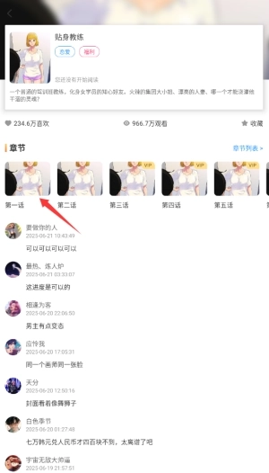 3、进入漫画详情页后,选择想要阅读的章节,就能开始浏览高清漫画内容了。