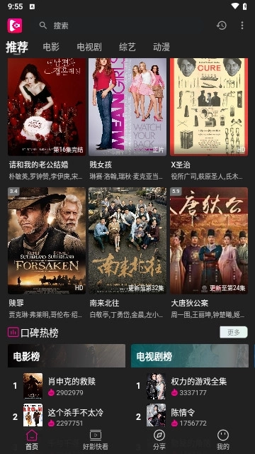 3.拥有的影视内容评级系统,可以为看过的影视剧进行评分,为其他人挑选好剧提供参考。