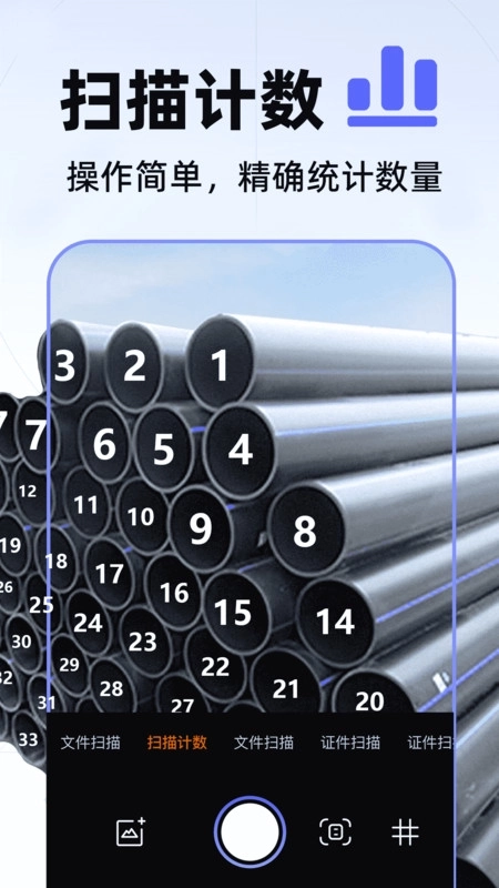 数数相机,界面设计清新,操作便捷,支持手机快速精准拍照扫描并统计数量,还具备试卷还原、去除手写痕迹、批改口算题等功能,能秒判对错,十分方便高效,适用于多种场景,可满足不同需求!