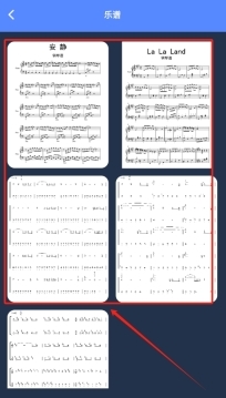 2、当你来到乐谱页面,从中挑选一份你钟爱的乐谱,轻轻点击即可进入详情页面。