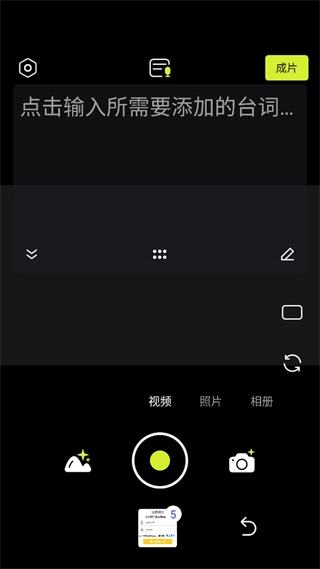 4、然后点击右上角的成片;