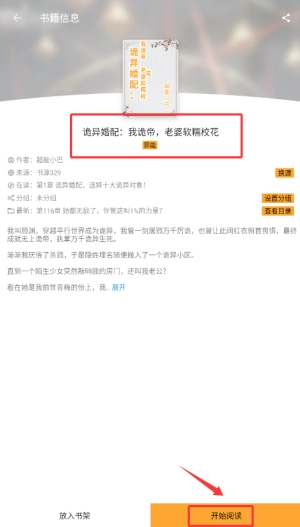 3、挑选到自己心仪的小说后,点击“开始阅读”,就能畅享流畅的章节浏览体验。
