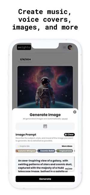 weights将专注AI生成服务,不管是何种风格的AI图片,用户都可以在平台中进行生成,非常的方便。