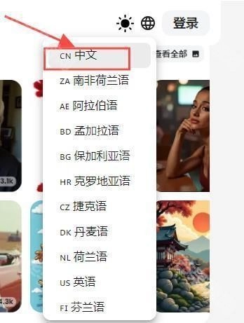 2、然后点击右上角位置调出语言。