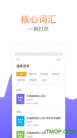 涵盖5000多个托福考点单词,以及500余个词组与短语。依据词频,还有听说读写四个科目,以及自然科学、人文社科等十多类话题,对词汇加以分类,从而形成丰富多样的细分词书。