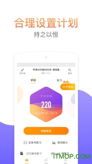 考满分词汇是一款专为托福考生打造的手机背单词软件。它拥有海量英语单词,并通过科学有效的记忆方法,助力您轻松背单词。有需要的朋友快来体验吧!