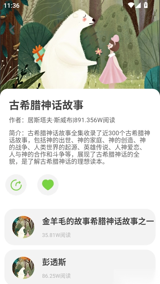 最后进入绘本故事的简介页面,点击爱心按钮就能完成收藏啦。