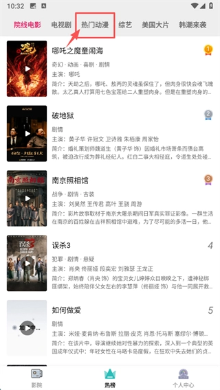 在热榜页面,点击热门动漫标签,进入热门动漫页面。