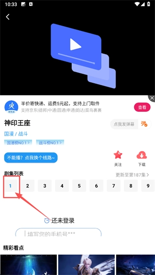 在热门动漫页面找到《神印王座》这部动漫,点击进入它的播放页面。
