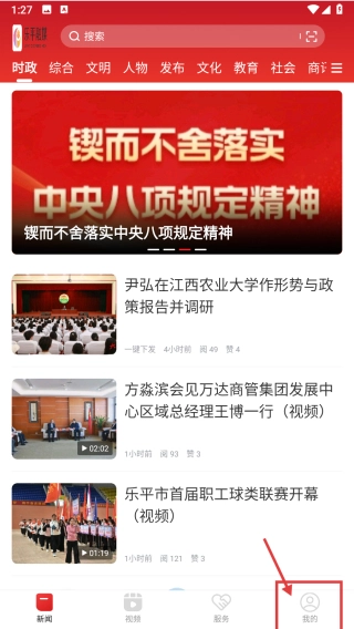 打开新闻类别,点击底部的“我的”选项,即可进入个人中心页面。