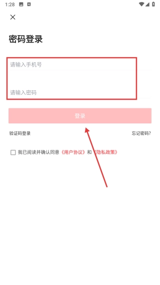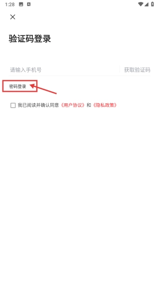 在密码登录界面,填写手机号与密码后,点击登录按钮,即可完成账号登录流程。