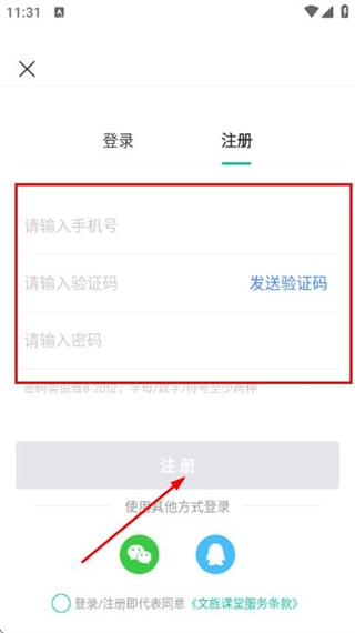 在注册页面依次填写手机号、验证码和密码,勾选同意相关协议后,点击注册按钮即可完成账号注册流程。