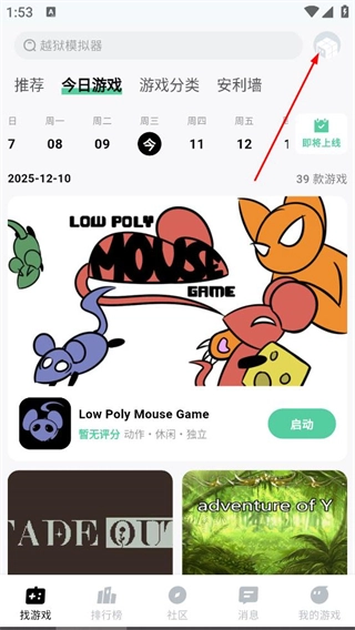 2、在魔核首页,点击右上角的房屋图标,即可进入登录选择页面。