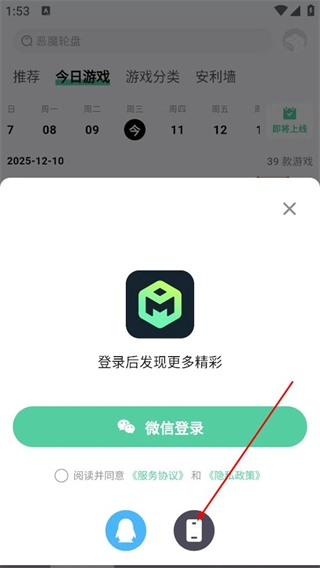 在登录页面,点击手机图标,就能进入手机号登录界面。
