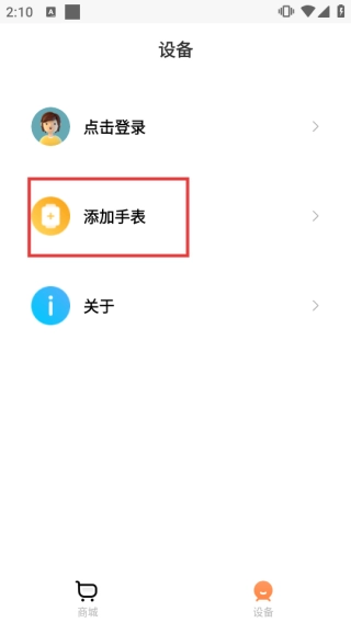 2、进入【设备】页面,点击【添加手表】选项,开始添加手表设备,完成设备与应用的连接配置。