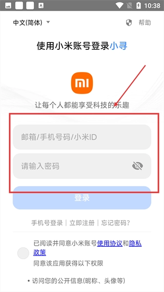 3、在输入框中依次填写【邮箱/手机号码/小米ID】及对应的密码。