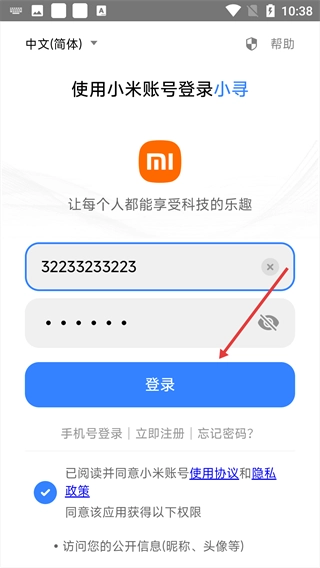 2、在登录方式选择界面,选择【小米账号登录】方式。