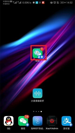 6、退出程序,把蓝色标记置于微信图标之上,点击蓝色指令标记。