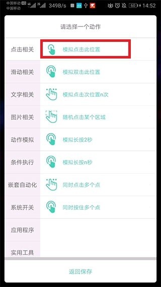3、整合点击、长按、滑动、识图等各类手机操作动作。