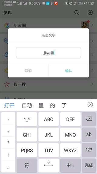 9、最后一步,点击“文字相关”,接着点击特定文字,在朋友圈输入内容后点击“确定”,此为第四个动作。