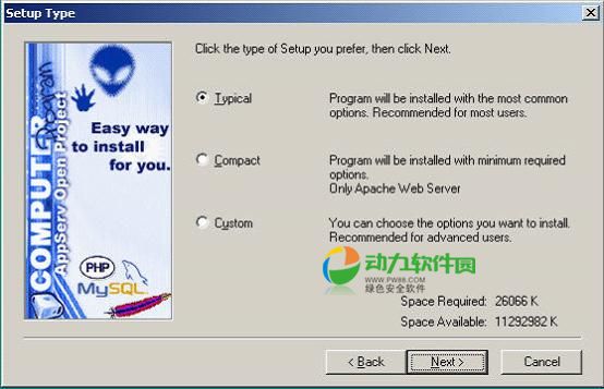 下载AppServ后双击Appservv2.6.exe就可以实现安装了。