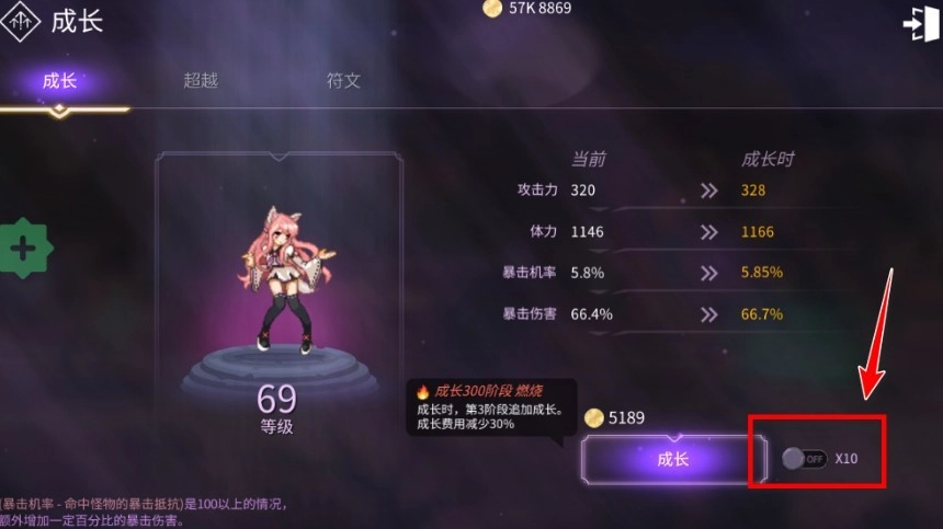 1在《魔法少女养成记》里,角色的成长极为关键。而让角色变强最为直接的途径,便是为其升级。只需点击界面右下角的“成长”按钮,就能进入升级界面。