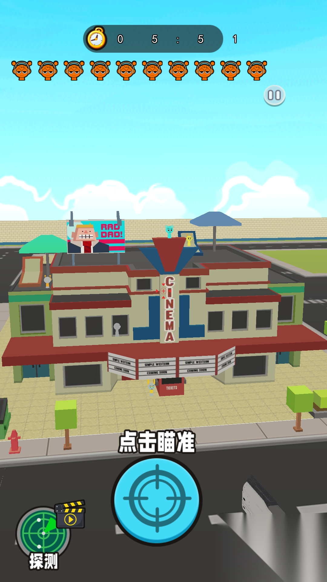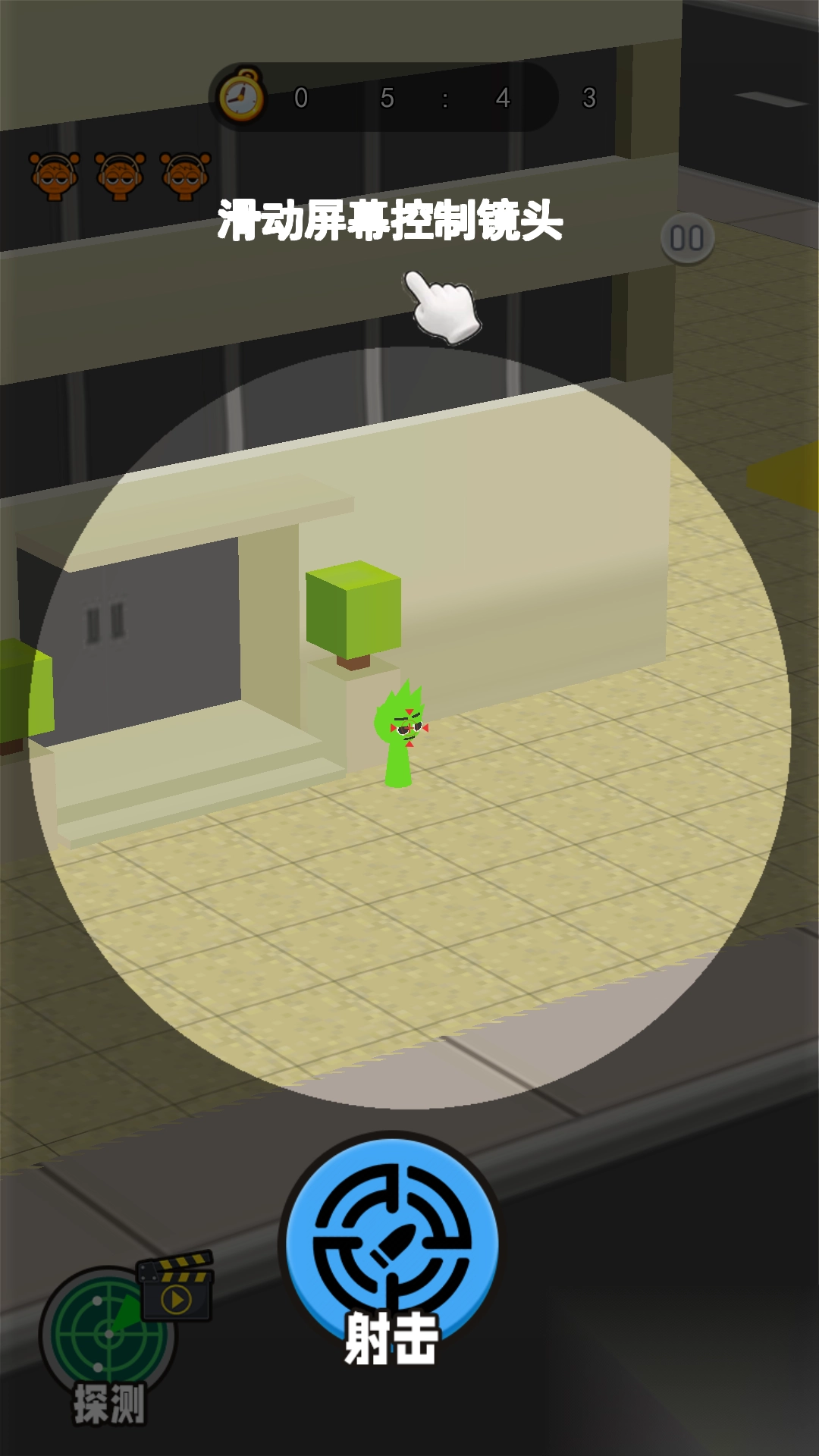 2、目标隐匿于场景的各个角落,像建筑物的屋顶就可能存在,玩家需要通过滑动屏幕来操控镜头,认真仔细地搜寻目标。