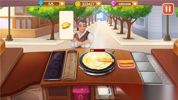 游戏初始,仅需经营一个煎饼摊,如同现实生活,形形色色的客人需求各异,有的不喜欢葱花,有的不想要薄脆。你能够依照摊饼、打蛋、放薄脆、加生菜、撒葱花等流程制作出一个煎饼,完成速度越快,获得的奖励就越高。当下,楼下早餐店已开放七大关卡,每个关卡对应一种中华美食,除了最初的早餐,还有烧烤、火锅等正餐挑战。而且玩家可以花费游戏货币来购买或升级设备。美中不足的是,游戏体力值较少,仅有5点,不过可以通过消耗钻石或者观看广告来恢复体力。