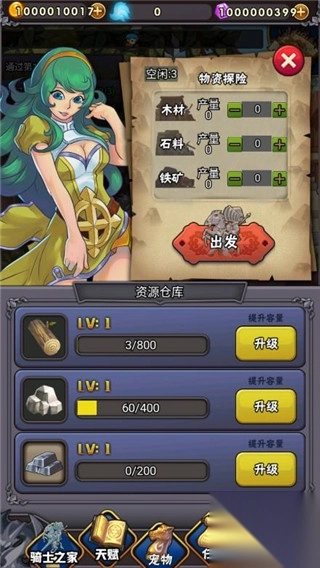 2、点击资源仓库,可以对仓库进行升级,还能直接探险。