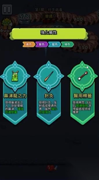 你将化身为最后的守卫者,操控各式高科技医疗道具,抵御一波波入侵的病毒军团。面对突变强化的病毒Boss,唯有不断进化,精准操作,才能守护最后的细胞净土!每一局游戏都是全新的挑战。病毒种类繁多,它们拥有不同的攻击方式与弱点机制。你需要在疾速的战斗中,精准锁定Boss的关键部位,通过高爆发射击进行打击,从而触发技能成长与装备强化。在每一轮战斗胜利后,你将从三种随机技能中选择一个,不断拓展你的能力构建,形成属于你的“抗毒Build”。是选择火力压制?速度机动?还是生存续航?一切由你主导。