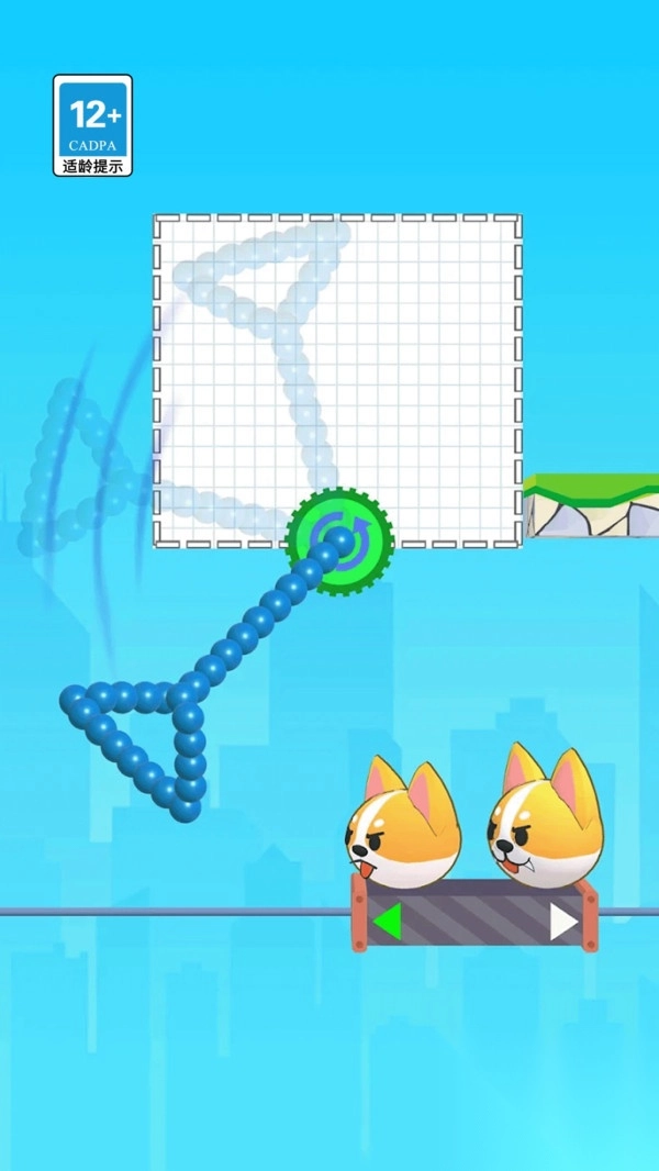 2. 可通过用手指画线来引导,也能放置诸如挡板、弹簧之类的道具,以此改变狗狗的行进方向。