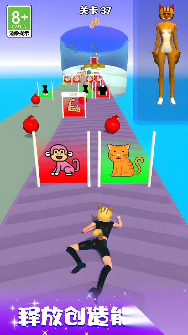1、把换装和跑酷相融合,突破了传统玩法的限制,不仅考验操作能力,还能激发创意。