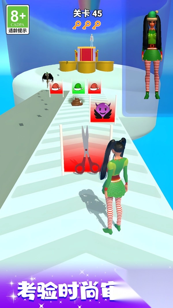 时尚换装大比拼游戏,融合了时尚换装与刺激跑酷两种玩法,是一款休闲类游戏。玩家在游戏里将化身为时尚达人,在酷炫的赛道上尽情奔跑、跳跃。过程中,玩家需要收集各类服装与配饰,完成即时换装的挑战。这款游戏以高自由度的穿搭系统以及快节奏的跑酷体验为核心亮点,能让你在速度与时尚的双重考验之下,摇身一变成为潮流之星。