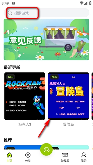 1、打开后在首页选择想玩的游戏,也可直接搜索。
