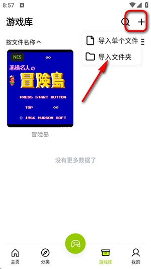 3、挑选手机中存储游戏rom的文件夹,推荐选择单个文件。