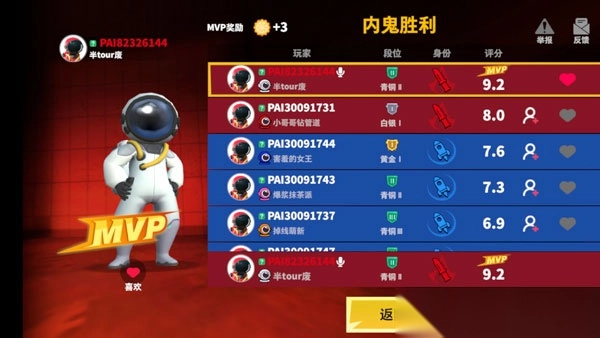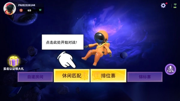 1、打开太空行动苹果版,进入游戏后,可以选择休闲匹配或者排位赛、锦标赛模式;