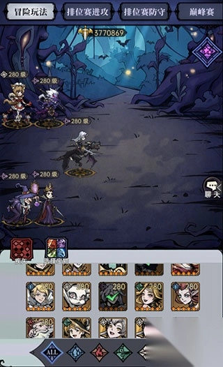 【超强阵容】:暗黑骑士担当前排肉盾,魔镜王后与邪魔悟空作为核心输出,再配上强力辅助疯外婆和女仆苏菲,堪称天下无敌。