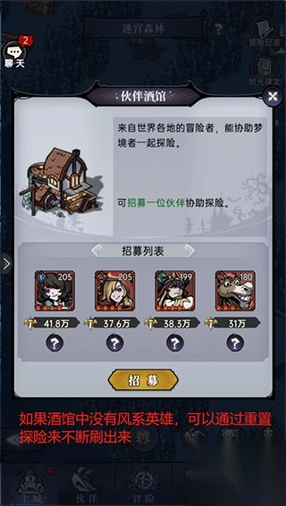 3、若酒馆中没有合适的风系伙伴,可以通过重置探险来刷新酒馆伙伴;