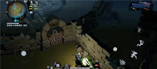 1、玩家在开始冒险后后,可通过左下方的遥控杆控制角色移动。