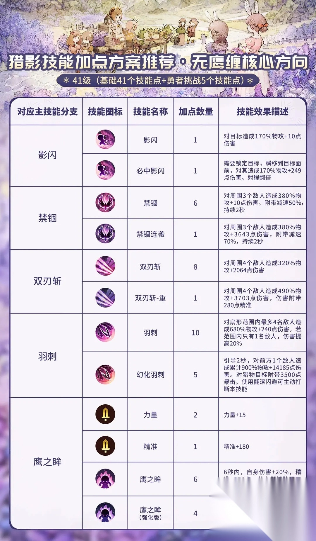 即便没有围绕鹰缠核心进行加点,该方案依旧能打出极高的爆发伤害。不过相对而言,它更适配PVE玩法,毕竟在这种玩法下,无需顾虑怪物会躲避技能,像装备裂隙、护送以及魔神试炼等场景均是如此。