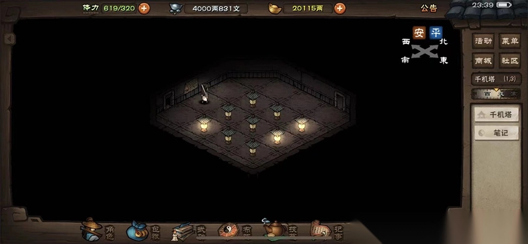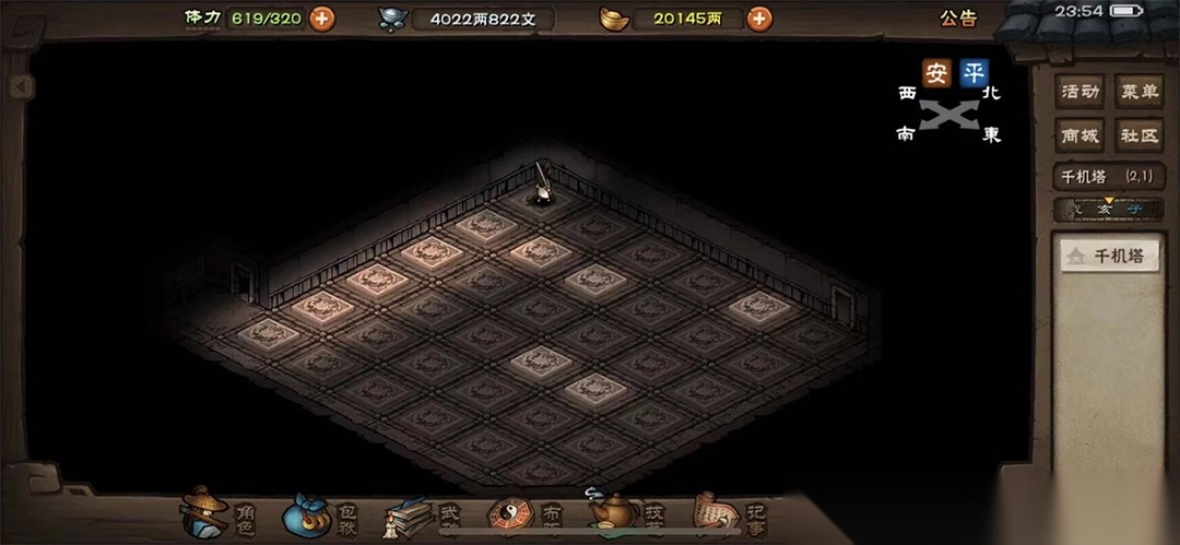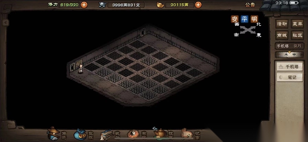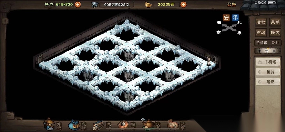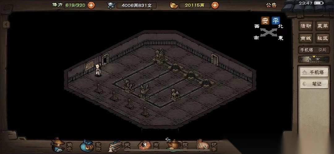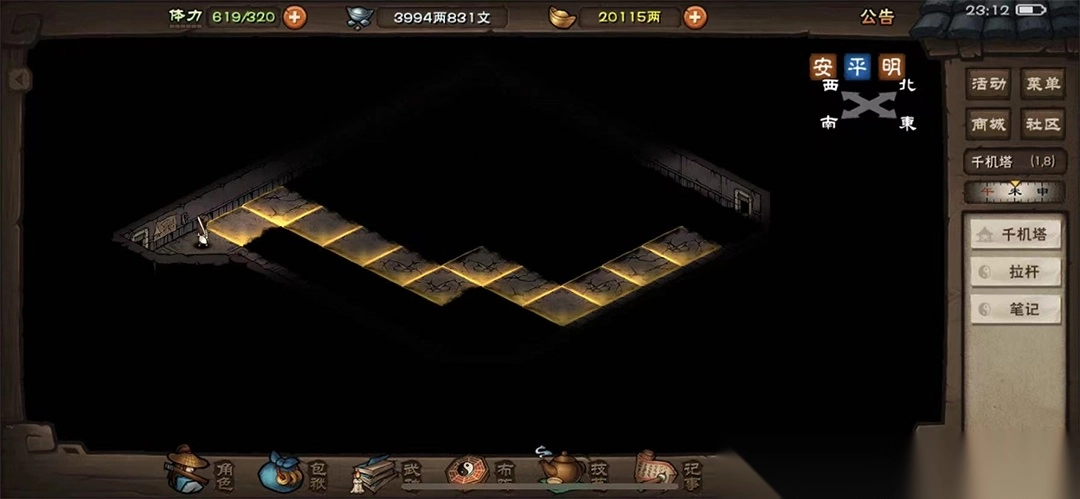 直接从南岭进入密室,在(10,12)启动拉杆开启机关