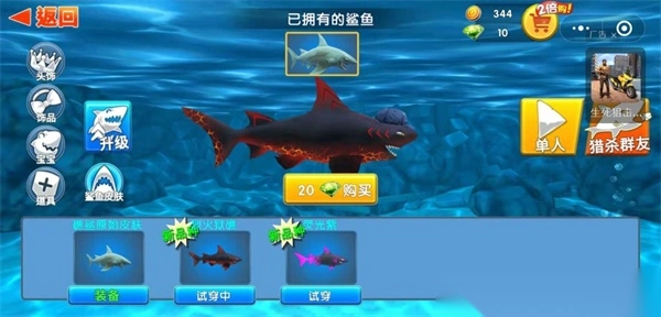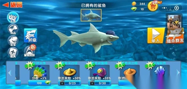 1、可以收集各有7种不同大小的20类鲨鱼品种,扮演敏捷的双髻鲨,甚至到著名的大白鲨!