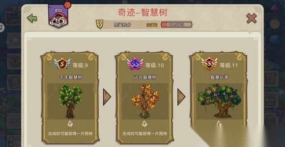 4、四级以上的智慧树可以采集出树叶了,用合成七级以上的智慧树有几率出雨林,目标是刷到最少一个一级雨林。