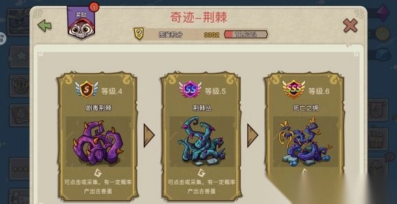 2、采集五级以上的的丛林树有几率出藤蔓,藤蔓做到满级的藤蔓小屋,点击出三个荆棘,之后会在周边陆续出四个荆棘,一共七个 出完就可以卖掉了。