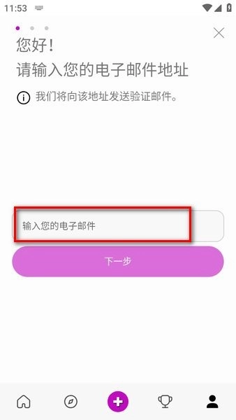 2、请输入您的电子邮箱地址,无论是qq邮箱还是其他邮箱均可,然后点击“下一步”;