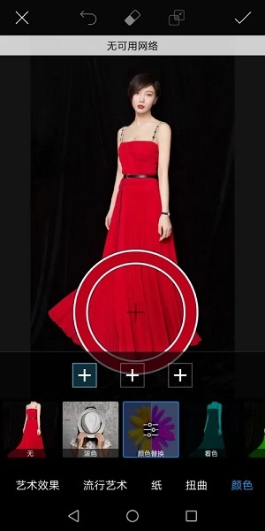 3、长时间按住圆圈中心直至出现加号,随后将该加号拖动至您希望替换颜色的衣物区域并释放;
